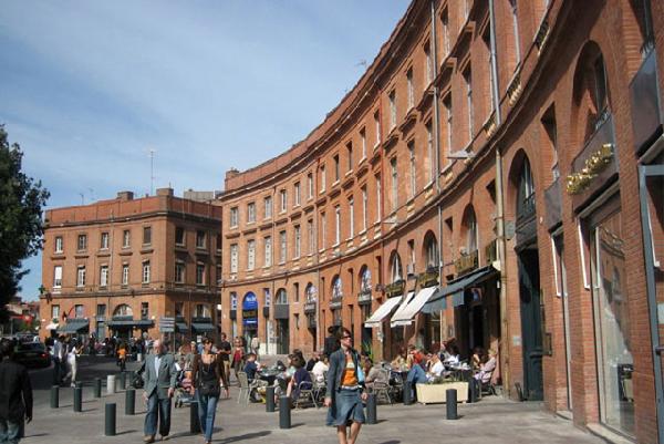 位于图卢兹的市中心,建筑都是典型的欧式古典风格,石板的道路上,淅淅沥沥的小雨,别有一番情调。周末有好多摆摊的,一排排买的都是便宜货,有吃有穿,有像农贸市场。广场周围四通八达的好多条路,多事店铺林立的商业街,也有奢侈品,也有大陆货。