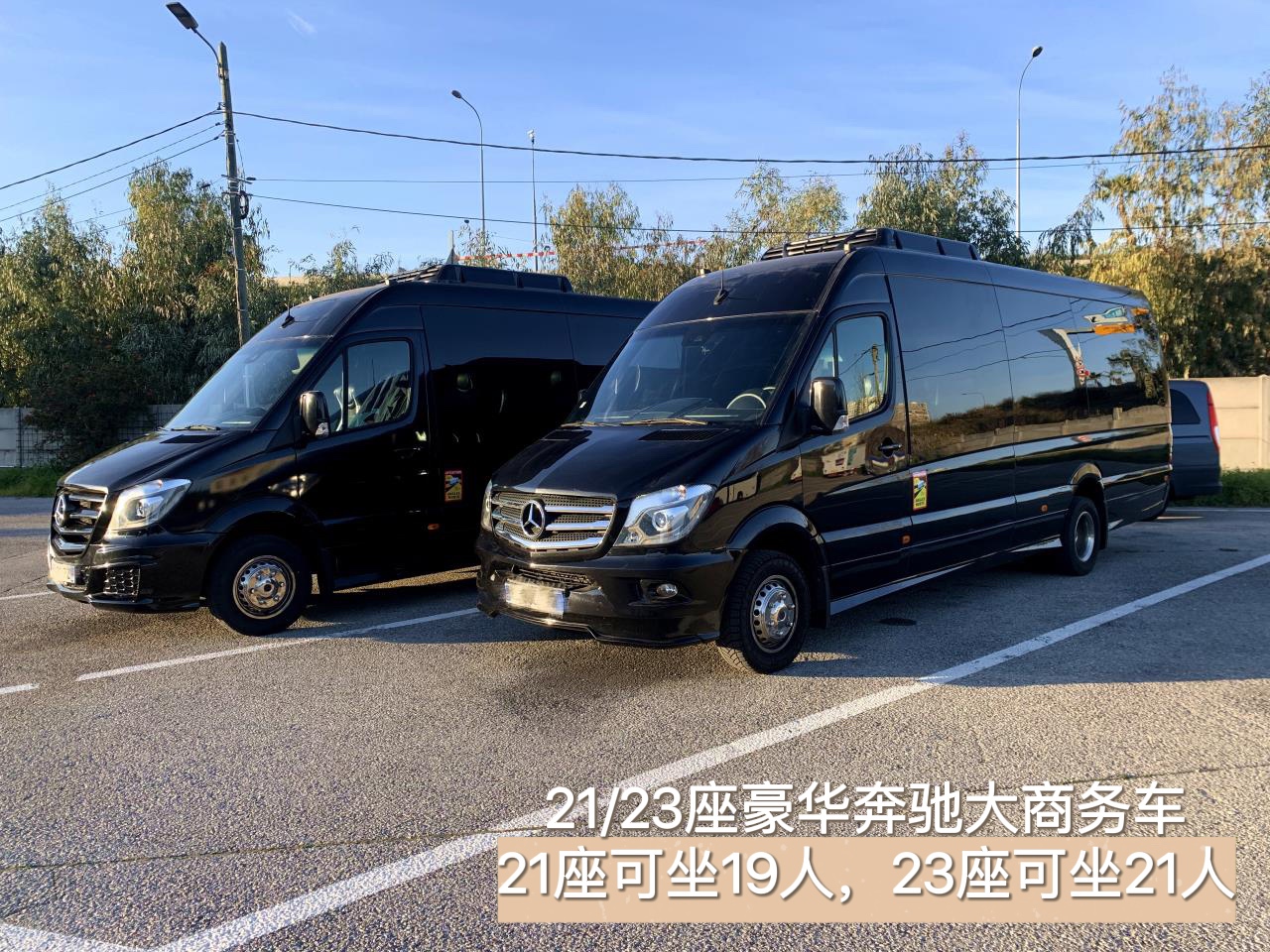 -23座豪华奔驰大商务车(安排司机与独立的导游,最多可坐21人+10件行李,儿童婴儿同样占座)