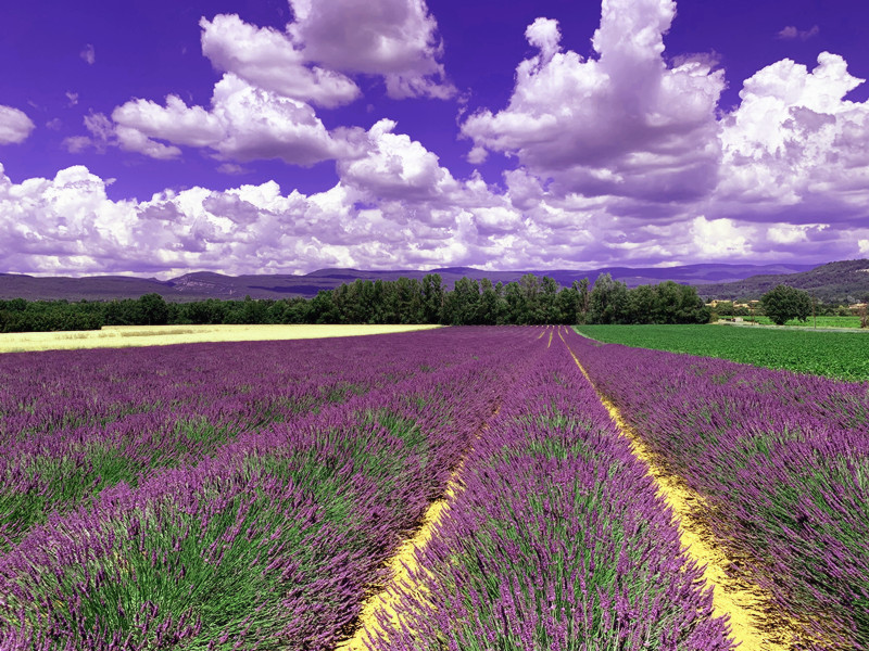 此外,梵高钟爱的向日葵也在这里大量繁衍。valensole当地的居民为了增加经济作物的种植量,在以往荒废的农田上大量种植向日葵。每到夏季6,7月份,在这片薰衣草的天堂上又多出了一种更绚丽的色彩—金黄的向日葵。湛蓝的天空,紫色的梦幻搭配着金黄笑脸,普罗旺斯追求色彩的执着在这里得到了充分的展示。穿行其间,就是一场视觉盛宴。